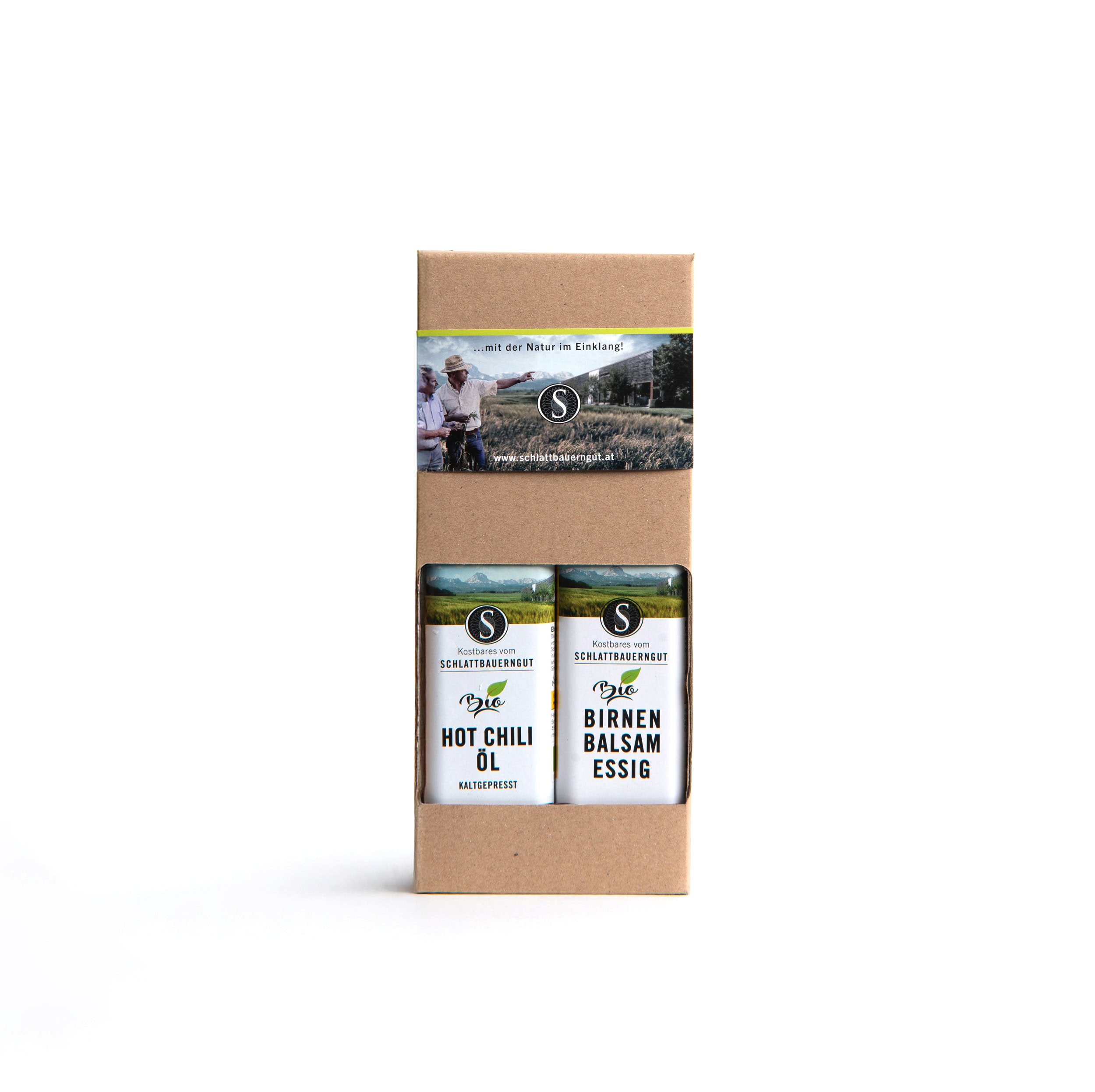 Jeder der es gerne süßlich und dennoch im Abgang feurig hat, liebt dieses Set. Durch dir Mischung vom Bio-Birnenbalsamessig 250ml und dem Bio Hot-Chiliöl 250ml entsteht eine besondere Geschmacksexplosion.